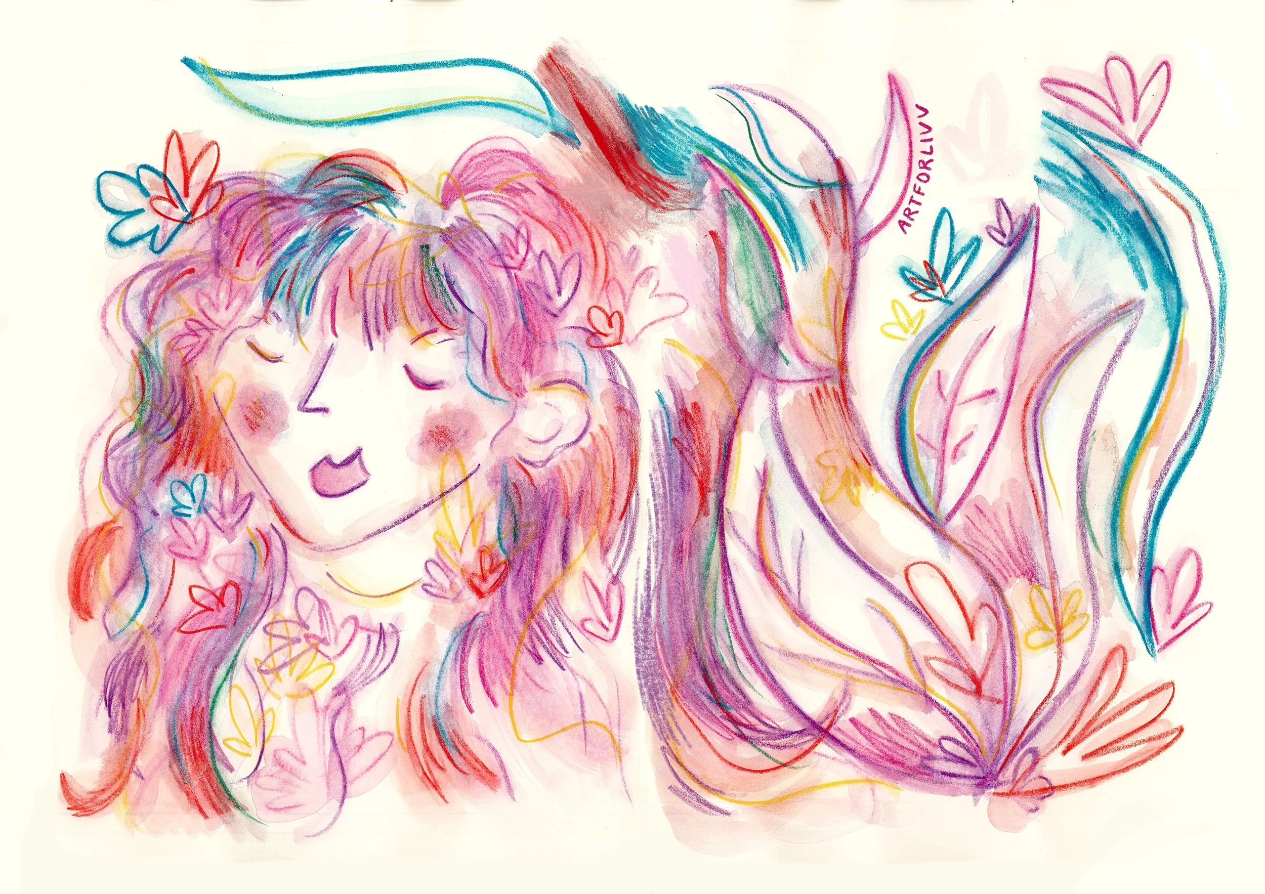 My art journey started when I was very young. You would almost always find me sketching a pencil portrait. As I have grown up, I started to utilise my passion for creating by using it as an outlet for me to express myself and put out messages that are important to me. I started creating from my imagination, rather than using a reference, and naturally would draw myself in a lot of these pieces to intertwine my identity with the messages.